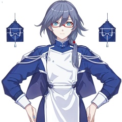 (masterpiece:1.3), (the best quality:1.2), (super fine illustrations:1.2), (Masterpiece), high quality, high detail,((white background:1.2)), looking at viewer, (SOLO:1.4),outline,,simple background, blue eyes, glasses, hair between eyes, fu hua, long hair, bangs, blue jacket, chinese clothes