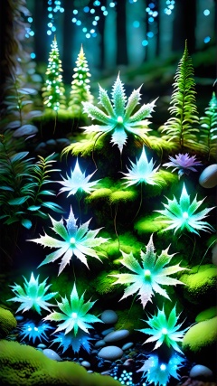 Continuing your stroll through the realm of mysterious plants, you discover a magical area called Starlight Magic Moss. The moss of these plants emits a shimmering light, dotting the surface like stars. Hidden among the moss are tiny Christmas lights, each one containing a mysterious magic. When night falls, the starlight magic moss emits a charming light, embellishing the entire area into a magical starlight forest.
