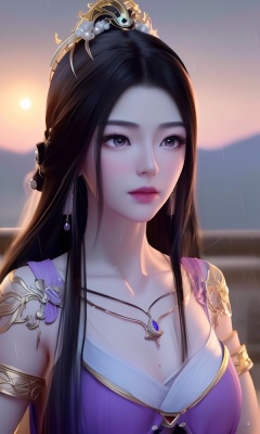 (,1girl, ,best quality, ),looking at viewer, <lora:395-DA-凡人修仙传-紫灵:0.8> ,,ultra detailed 8k cg, ultra detailed background ,ultra realistic 8k cg, flawless,  tamari \(flawless\), professional artwork, famous artwork, cinematic lighting, cinematic bloom, (( , )),, dreamlike, unreal, science fiction,  luxury, jewelry, diamond, pearl, gem, sapphire, ruby, emerald, intricate detail, delicate pattern, charming, alluring, seductive, erotic, enchanting, hair ornament, necklace, earrings, bracelet, armlet,halo,masterpiece, (( , )),, realistic,science fiction,mole,   ,cherry blossoms,,(((Best quality, masterpiece, ultra high res, (photorealistic:1.4), raw photo, 1girl, ,rain, , sunlight, sunset, qianqiu wanxia,     )))  (()), (), , jewelry, necklace, solo, , , , hair_ornament, , earrings,large breasts,,  , ,