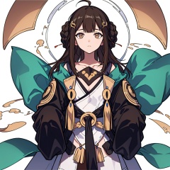 (masterpiece:1.3),(the best quality:1.2),(super fine illustrations:1.2),(Masterpiece),high quality,high detail,(white background:1.2),looking at viewer,(SOLO:1.4),outline,simple background,, off shoulder,hairclip,chinese clothes,sleeves past wrists,strapless dress,mole under eye,wide sleeves,blunt bangs,barefoot,hair ornament,hair bun,brown hair,detached sleeves,long hair,1girl,solo,