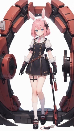 best quality, masterpiece, illustration, 1girl, solo, full body, Rabbit ear, White background, Mechanical, Mechanical body, Pink hair,