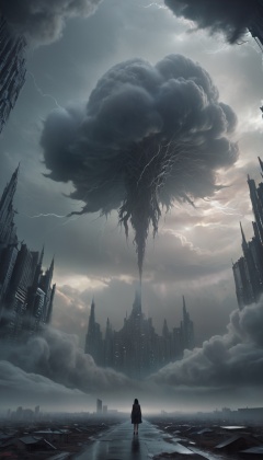 <lora:xl-shanbailing-1215白棱monster-000002:0.9>,bailing_monster,a huge monster passes through the clouds,outdoors,(1girl:0.3),city,mitsu_masaya,cloudy,megalophobia,centered composition,ultimate light and shadow,UHD,8k resolution,cinematic lighting,extremely low angle shooting,Darkgiants,science fiction,biomechenical environment,outdoor,overwhelming storm,unbelievable landscape,Chris Cold,matte painting concept art,fantasy art,horror art,low angle,from below,dutch angle,