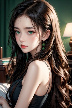 The original realistic portrait of a beautiful girl. She has a petite frame, red and wavy hair that just falls past her shoulders, surrounding a circular face with softness. her naturally arched red eyebrows over bright green eyes that look almost blue in some lights. 21yo girl, office lady, pencil skirt, red lips, glint sparkle, taoist robe, chang,<lora:EMS-227407-EMS:0.700000>,<lora:EMS-10592-EMS:0.500000>