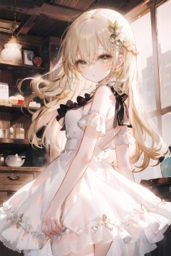 masterpiece,best quality,high detailed,1girl, official art,extremely detailed CG unity,ray tracing ,high res, original, extremely detailed 8K wallpaper,incredibly_absurdres,colorful,intricate detail,(solo),(loli,liitle girl:1.3),an extremely delicate and beautiful girl,cute,light golden hair,bright and detailed eyes,green eyes,long hair flowing with the wind,long bangs between eyes,messy hair,payot,french braid,wet white dress with gold decoration,wrinkled skirt,tulle lace white skirt,beautiful hair ornaments,delicate wet skirt,bare<lyco:GoodHands-beta2:0.9>