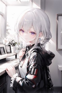 masterpiece,best quality,high detailed,1girl,solo, half-closed eyes, light smile, iei, monochrome,picture frame, best quality, amazing quality, very aesthetic, absurdres<lyco:GoodHands-beta2:0.9>