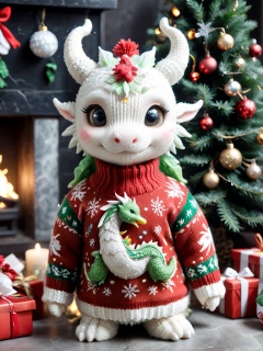 cute Christmas Chinese dragon,wearing Christmas Sweater,