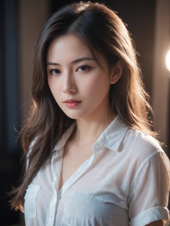RAW photo,portrait of a beautiful woman wearing a shirt (high detailed skin:1.2),8k uhd,dslr,soft lighting,high quality,film grain,Fujifilm XT3,