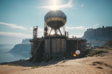 Alien architecture,people,lake,Drop of water,outdoor,crater,The dawn, glare,Cthulhu,(Ball of metal,Alien architecture:1.5),symmetry,Mr_Mc_Concept_V1,Space of contradiction,(masterpiece, best quality:1.4), (8k:1.3), ultra-detailed, highly detailed, extremely detailed light and shadow, Tyndall Effect, best light,floating gold light, Movie light, Vanishing Point, Masterpiece, best picture quality, mountain, high altitude, precision machinery, aircraft, environmental concept art, mystery, cg scene design, 3D, big scenes, epic sense, intense chiarama, fantasy 3D rendering, master works, high quality, ultra-high detail, 8K, HD,