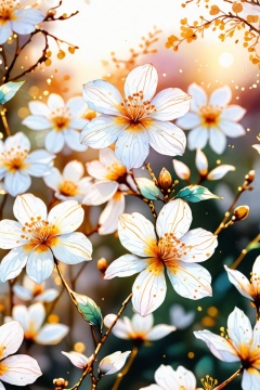 line drawing , floral, fantasy, white background, HD, anime, watercolor, ink, flowers & blossoms, golden hour, bokeh, ambient environment, epic, 4k, beautiful landscape, centered, full picture,<lora:659095807385103906:1.0>