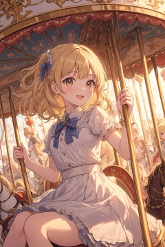 ultra-detailed,(best quality),((masterpiece)),(highres),original,extremely detailed 8K wallpaper,(an extremely delicate and beautiful),anime,\\,BREAK1girl,beautiful,blonde hair,happy,on a carousel,anime style,nice,perfect,finely detailed,aesthetic,ideal,impeccable,