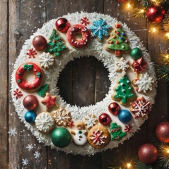poakl christmas style,(masterpiece, best quality:1.2), sugarcookiestyle, wreath, tinsel, frosting, no humans, food, bagel,<lora:poaklSDXLchristmas-000008:0.6>,