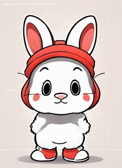 兔2, Very cute rabbit wearing a red muffler,  minimalist line art, sanrio style, graffiti on the wall,  hip-hop, Disney's little man tuyafengge kids illustration,<lora:EMS-242900-EMS:1.000000>