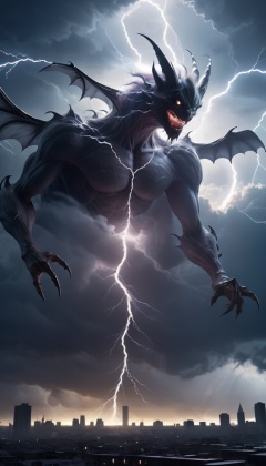 <lora:xl-shanbailing-1215白棱monster-000002:0.9>,bailing_monster,a huge monster passes through the clouds,(bat:1.2),outdoors,(1girl:0.5),darkness,city,mitsu_masaya,huge,cloudy,thunder,electricity,warlord,DCG,epic scenes,special effects,huge waves,realistic photo,ultimate light and shadow,cast a spell,