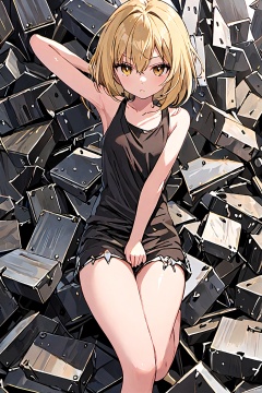 ,bailing_metal,a girl made of worn-out metal,(blonde hair:0.6),(thighs:0.6), bailing_metal