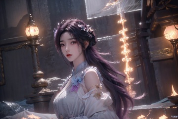 masterpiece,(best quality),official art, extremely detailed cg 8k wallpaper,((crystalstexture skin)), (extremely delicate and beautiful),highly detailed,1girl,solo,long hair,ruhua, purple hair, sssr