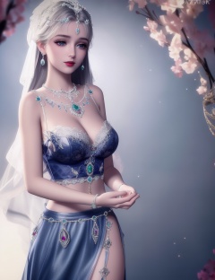 ultra realistic 8k cg, picture-perfect face, flawless, clean, masterpiece, professional artwork, famous artwork, cinematic lighting, cinematic bloom, perfect face, beautiful face, fantasy, dreamlike, unreal, science fiction, huge breasts, beautiful clothes, lace, lace trim, lace-trimmed legwear, (rich:1.4), prestige, luxury, jewelry, diamond, gold, pearl, gem, sapphire, ruby, emerald, intricate detail, delicate pattern, charming, alluring, seductive, erotic, enchanting, hair ornament, necklace, earrings, bracelet, armlet,halo ((,1girl:1.5,   solo, ))<lora:DA_NikkiChangEr2.0:0.6>