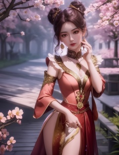 ultra realistic 8k cg, picture-perfect face, flawless, clean, masterpiece, professional artwork, famous artwork, cinematic lighting, cinematic bloom, perfect face, beautiful face, fantasy, dreamlike, unreal, science fiction,  beautiful clothes, lace, lace trim, lace-trimmed legwear,  (rich:1.4), prestige, luxury, jewelry, diamond, gold, pearl, gem, sapphire, ruby, emerald, intricate detail, delicate pattern, charming, alluring, seductive, erotic, enchanting, hair ornament, necklace, earrings, bracelet, armlet,halo((,1girl, pov,))(((,peach blossom, branch, 1girl, tree, spring_\(season\), solo, petals, black_hair, japanese_clothes,looking at viewer, )))    <lora:DA_MaXiaoTao:0.6>