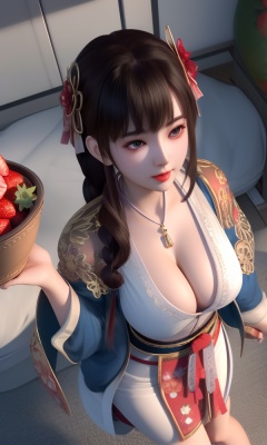 (,1girl, ,best quality, ),looking at viewer, <lora:399-DA-少年歌行-华锦:0.8> ,, ,masterpiece, (( , )),ultra realistic 8k cg, ,tamari \(flawless\),   ,cleavage,strawberry blossoms,lace , (()), (),