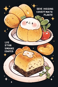 shouzhang_style, no humans, food focus, food, still life, sparkle, english text, plate, vegetable, simple background,<lora:shouzhang_v1.0:1.3>,, masterpiece,best quality,