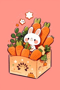 shouzhang_style,no humans,rabbit,shop,star \(symbol\),carrot,box,animal focus,pink background,<lora:shouzhang_v1.0:1.2>,, masterpiece,best quality,