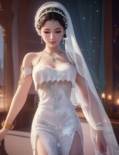 ultra realistic 8k cg, picture-perfect face, flawless, clean, masterpiece, professional artwork, famous artwork, cinematic lighting, cinematic bloom, perfect face, beautiful face, fantasy, dreamlike, unreal, science fiction,  beautiful clothes, lace, lace trim, lace-trimmed legwear,  (rich:1.4), prestige, luxury, jewelry, diamond, gold, pearl, gem, sapphire, ruby, emerald, intricate detail, delicate pattern, charming, alluring, seductive, erotic, enchanting, hair ornament, necklace, earrings, bracelet, armlet,halo((,1girl, pov,))(((,  1girl,  solo,looking at viewer, ))),(((1girl, solo, dress, white_dress, jewelry)))<lora:DA_WhiteSnakeGreenSnake:0.7>