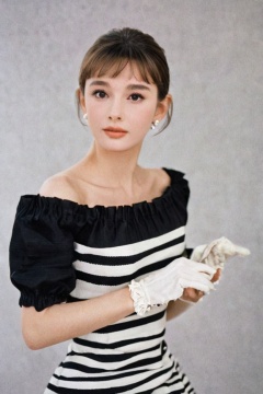 (masterpiece, best quality, hyper realistic, raw photo, ultra detailed, extremely detailed, intricately detailed),(photorealistic:1.4),(photography of Audrey Hepburn wearing a fashionable Striped off-the-shoulder ruffle hem dress, designed by Hubert de Givenchy, ),excited,amused,striped long sleeve shirt,sexy,beautiful,young,dslr,8k,4k,ultrarealistic,realistic,natural skin,textured skin,60s,Pantheonfashion,<lora:Breakfast at Tiffany's XL:0.8>,<lora:ACh XL:1>,<lora:Better Detail:0.65>,