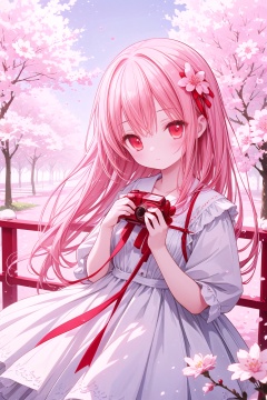 The image features a beautiful anime girl dressed in a flowing white and red dress, standing amidst a flurry of red cherry blossoms. The contrast between her white dress and the red flowers creates a striking visual effect. The lighting in the image is well-balanced, casting a warm glow on the girl and the surrounding flowers. The colors are vibrant and vivid, with the red cherry blossoms standing out against the white sky. The overall style of the image is dreamy and romantic, perfect for a piece of anime artwork. The quality of the image is excellent, with clear details and sharp focus. The girl's dress and the flowers are well-defined, and the background is evenly lit, without any harsh shadows or glare. From a technical standpoint, the image is well-composed, with the girl standing in the center of the frame, surrounded by the blossoms. The use of negative space in the background helps to draw the viewer's attention to the girl and the flowers. The cherry blossoms, often associated with transience and beauty, further reinforce this theme. The girl, lost in her thoughts, seems to be contemplating the fleeting nature of beauty and the passage of time. Overall, this is an impressive image that showcases the photographer's skill in capturing the essence of a scene, as well as their ability to create a compelling narrative through their art.
