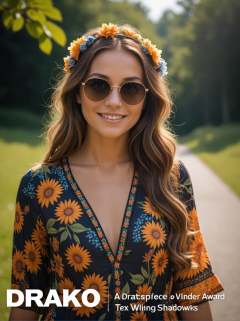 (movie poster with title and text graphics:1.3) (under the title banner text logo "D\R\A\K\O":1.5), (masterpiece award winning) RAW analog photo (70s) hippie woman wear floral print dress (intricate details:1.1) Fujifilm XT3 (film grain) smiling sunglasses (soft natural lighting) (best quality) (dark shadows) (bokeh) (dof:1.2) (sharp focus:1.3) (detailed skin:1.2) (8k) (uhd) (hdr) (dslr) (absurdres), BREAK , BREAK