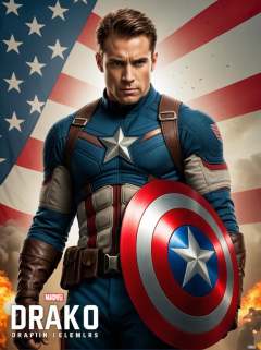 (movie poster with title and text graphics:1.3) (under the title banner text logo "D\R\A\K\O":1.5), Captain America by Lee Jeffries,