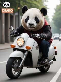 (movie poster with title and text graphics:1.3) (under the title banner text logo "D\R\A\K\O":1.5), natural light panda riding moped, speeding past other cars, (gaussian blur:1.1) (high key photo masterpiece:1.2) raw photo, (film grain:1.3), depth field, bokeh, Best quality, masterpiece, ultra high res, (photorealistic:1.4), (smooth light:1.4)