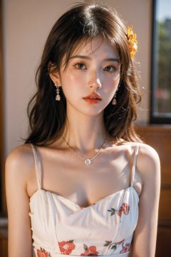 1girl,Kolak_blk,(8k, RAW photo, best quality, masterpiece:1.3),(realistic,photo-realistic:1.37),soft light,extremely beautiful face,an extremely delicate and beautiful girl,depth of field,blurry background,delicate,beautiful,beautiful face,beautiful eyes,beautiful girl,delicate face,delicate girl,8k wallpaper,(best quality:1.12),(detailed:1.12),(intricate:1.12),(ultra-detailed:1.12),(highres:1.12),hyper detailed,ultra-detailed,high resolution illustration,colorful,8k wallpaper,highres,Cinematic light,ray tracing,(8k, RAW photo, best quality, masterpiece, ultra highres, ultra detailed:1.2),(realistic, photo-realistic:),jewelry,ring,solo,necklace,flower,hair ornament,lips,blurry,realistic,grapes,hair flower,curly hair,blurry background,black hair,earrings,breasts,brown hair,red lips,applying_makeup,lipstick,(floral print:1.2),indoors,<lora:Kolak_“巴洛克风“法式复古感人像:0.66>,dress,(white dress:1.1),fluffy hair,cowboy_shot,