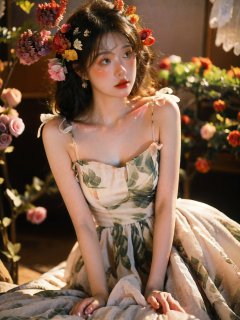 1girl,Kolak_blk,(8k, RAW photo, best quality, masterpiece:1.3),(realistic,photo-realistic:1.37),soft light,extremely beautiful face,an extremely delicate and beautiful girl,depth of field,blurry background,delicate,beautiful,beautiful face,beautiful eyes,beautiful girl,delicate face,delicate girl,8k wallpaper,(best quality:1.12),(detailed:1.12),(intricate:1.12),(ultra-detailed:1.12),(highres:1.12),hyper detailed,ultra-detailed,high resolution illustration,colorful,8k wallpaper,highres,Cinematic light,ray tracing,(8k, RAW photo, best quality, masterpiece, ultra highres, ultra detailed:1.2),(realistic, photo-realistic:),jewelry,ring,solo,necklace,flower,hair ornament,lips,blurry,realistic,grapes,hair flower,curly hair,blurry background,black hair,earrings,breasts,brown hair,red lips,applying_makeup,lipstick,(floral print:1.2),indoors,<lora:Kolak_“巴洛克风“法式复古感人像:0.66>,dress,(white dress:1.1),fluffy hair,cowboy_shot,<lora:Kolak_“巴洛克风“法式复古感人像(9):0.66>,
