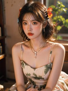 1girl,Kolak_blk,(8k, RAW photo, best quality, masterpiece:1.3),(realistic,photo-realistic:1.37),soft light,extremely beautiful face,an extremely delicate and beautiful girl,depth of field,blurry background,delicate,beautiful,beautiful face,beautiful eyes,beautiful girl,delicate face,delicate girl,8k wallpaper,(best quality:1.12),(detailed:1.12),(intricate:1.12),(ultra-detailed:1.12),(highres:1.12),hyper detailed,ultra-detailed,high resolution illustration,colorful,8k wallpaper,highres,Cinematic light,ray tracing,(8k, RAW photo, best quality, masterpiece, ultra highres, ultra detailed:1.2),(realistic, photo-realistic:),jewelry,ring,solo,necklace,flower,hair ornament,lips,blurry,realistic,grapes,hair flower,curly hair,blurry background,black hair,earrings,breasts,brown hair,red lips,applying_makeup,lipstick,(floral print:1.2),indoors,<lora:Kolak_“巴洛克风“法式复古感人像:0.6>,dress,(white dress:1.1),fluffy hair,cowboy_shot,<lora:Kolak_“巴洛克风“法式复古感人像(9):0.4>,