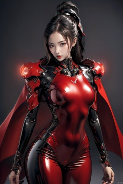 (Masterpiece: 1.6, (highly detailed: 1.6), (best quality: 1.6) (high resolution: 1.6) 1 girl, red patent leather Skin-tight garment, (mechanical: 1.1), complex decoration, armed weapons, Futurism, punk,machinery,blue_jijiaS,Sexy muscular, Hyung Tae Kim, mecha, circular face