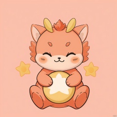 Orange-red,:3, blush, closed eyes, full body, gradient, gradient background, no humans, pokemon \(creature\), smile, solo,five-pointed star,Five-pointed star