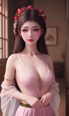 (,1girl, ,best quality, ),looking at viewer, <lora:408-DA-凡人修仙传-卓如婷:0.8> ,, ,masterpiece, (( , )),ultra realistic 8k cg, ,    ,cleavage,strawberry blossoms,lace , (()), (),