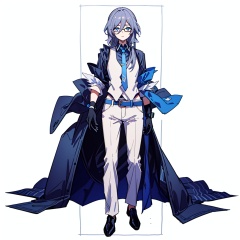 (masterpiece:1.3),(the best quality:1.2),(super fine illustrations:1.2),(Masterpiece),high quality,high detail,(white background:1.2),looking at viewer,(SOLO:1.4),outline,simple background,full body,<lora:符华-白夜-旅途危机ver:0.8>,blue armband,white vest,hair between eyes,collared shirt,black pants,black footwear,black shirt,white belt,twintails,low twintails,black-framed eyewear,fu hua,blue necktie,blue eyes,necktie,eyebrows visible through hair,grey hair,glasses,black gloves,bespectacled,1girl,