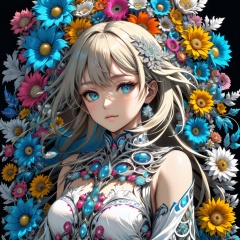 (Arts and Crafts Movement), anime,(masterpiece, top quality, best quality, official art, beautiful and aesthetic:1.2), (1girl), upper body,extreme detailed,(fractal art:1.3),colorful, flowers ,highest detailed