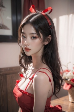 21yo girl, solo, looking at viewer, HUBG_Red_Ribbon,