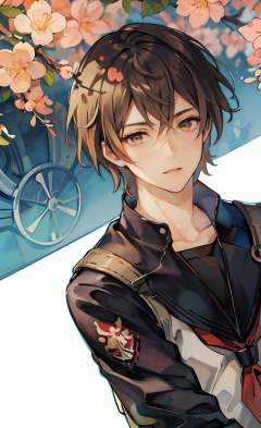 detailed manga illustration,(masterpiece),(best quality),Amazing,beautiful detailed,extremely detailed wallpaper,extremely detailed CG unity 8k wallpaper,an extremely delicate and beautiful,perfect face, sidelighting, lustrous skin, (shine), lighting, depth of field, perspective,solo, brown hair, 1boy, full body, school uniform, male focus,  sailor uniform, cherry blossom tree, looking_at_viewer, short_hair, detailed background, <lora:13机兵Google:0.8>