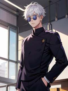 1boy,, masterpiece,best quality, <lora:jjk_gojo_s2-10:1>,gojo satoru,sunglasses, round eyewear, school uniform, black jacket, high collar, black pants