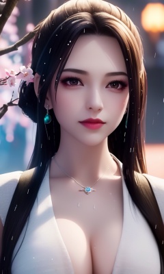 <lora:411-DA-太一剑仙传-季师师:0.8> ,(,1girl, ,best quality, ),looking at viewer, ,ultra detailed 8k cg, ultra detailed background,  ultra realistic 8k cg,          cinematic lighting, cinematic bloom, (( , )),,  , unreal, science fiction,  luxury, jewelry, diamond, pearl, gem, sapphire, ruby, emerald, intricate detail, delicate pattern, charming, alluring, seductive, erotic, enchanting, hair ornament, necklace, earrings, bracelet, armlet,halo,masterpiece, (( , )),,  ,cherry blossoms,(((, night,night sky,,  ultra high res, (photorealistic:1.4), raw photo, 1girl, , rain, sweat, ,wet, )))(( , ))   (cleavage), (), blurry, depth_of_field, blurry_background, 1girl, blurry_foreground, black_hair, mole, solo, lips, motion_blur, nose, makeup,