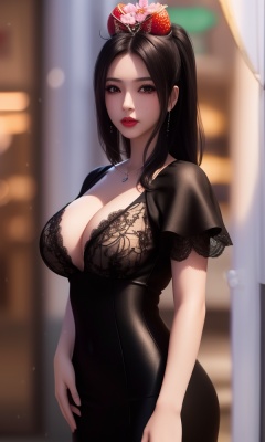 (,1girl, ,best quality, ),looking at viewer, <lora:411-DA-太一剑仙传-季师师:0.8> ,, ,masterpiece, (( , )),ultra realistic 8k cg, ,    ,cleavage,strawberry blossoms,lace , (cleavage), (), blurry, depth_of_field, blurry_background, 1girl, blurry_foreground, black_hair, mole, solo, lips, motion_blur, nose, makeup,