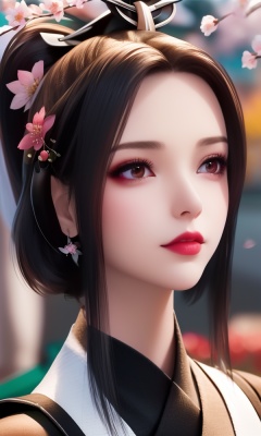 (,1girl, ,best quality, ),looking at viewer, <lora:411-DA-太一剑仙传-季师师:0.8> ,ultra detailed 8k cg,ultra detailed background,ultra realistic 8k cg, ,masterpiece, (( , )),, ,science fiction,mole, ultra realistic 8k cg, ,    ,(,cherry blossoms, autumn leaves,perfect cherry blossom,   ), (cleavage), blurry, depth_of_field, blurry_background, 1girl, blurry_foreground, black_hair, mole, solo, lips, motion_blur, nose, makeup,