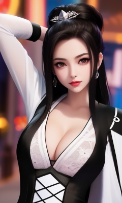 (,1girl, ,best quality, ),looking at viewer, <lora:411-DA-太一剑仙传-季师师:0.8> ,,,ultra detailed background,ultra detailed background,ultra realistic 8k cg, ,masterpiece, (( , )),   (magic, magic circle, ),  (cleavage), (), blurry, depth_of_field, blurry_background, 1girl, blurry_foreground, black_hair, mole, solo, lips, motion_blur, nose, makeup,