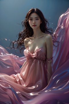 sd mai, piao, 1girl, solo, breasts, long hair, parted lips, dress, looking at viewer, cleavage, brown hair, bare shoulders, medium breasts, lips, pink dress, collarbone, brown eyes<lora:piao:0.8>