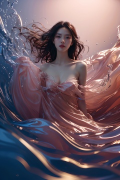sd mai, piao, 1girl, solo, dress, brown hair, long hair, breasts, water, parted lips, looking at viewer, realistic, lips <lora:飘piao:0.7>