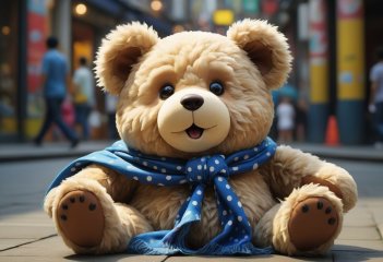 drunk Hadlee Graham in Kaohsiung is Swiveling on one foot is a teddy bear whilst wearing a blue polka dot scarf, with two googly eyes and long eyelashes going out of it’s a little rainbow colors, realistic, 8k, photograph, highly detailed, ultra HD, highly detailed, very beautiful, realistic, award winning, elegant details, realistic symmetrical body, wide angle lens, extremely high res trending on artstation, good art, very detailed, post-processing, realistic, high detailed, rst 8k UHD, ray traced, 8k ultra high definition, photo realistic, national geographic, Octane render in the style by Leonardo DaVinci Resolve and studio ghibli studio quality, god rays of an art collection (and artwork by Jeremy Mann) much wow and Arnold Newman Morena Abatwa, intricate