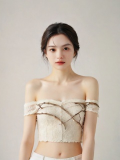 cinematic photo Photography style,master masterpiece,super detail,1 young girl,model,delicate face,off shoulder,withered branches around,perfect body,white background,analog film,HD,8k,full body,<lora:CL XL:1>, . 35mm photograph, film, bokeh, professional, 4k, highly detailed