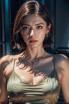 1girl, solo, realistic, jewelry, necklace, brown hair, dress, breasts, brown eyes, hands on hips, cleavage, earrings, lips, white dress, simple background, looking at viewer, medium breasts, short hair,makeup,fashion model,picture-perfect face,flowing hair,shiny skin,full body,full body,(Shooting background board,photostudio),(simple),(masterpiece, top quality),master piece,professional artwork,famous artwork,(realistic,photorealistic:1.37) ,HDR,UHD,8K, ultra realistic 8k cg,8K, 32k,HD, <lora:mdspink3-000002:0.5>
